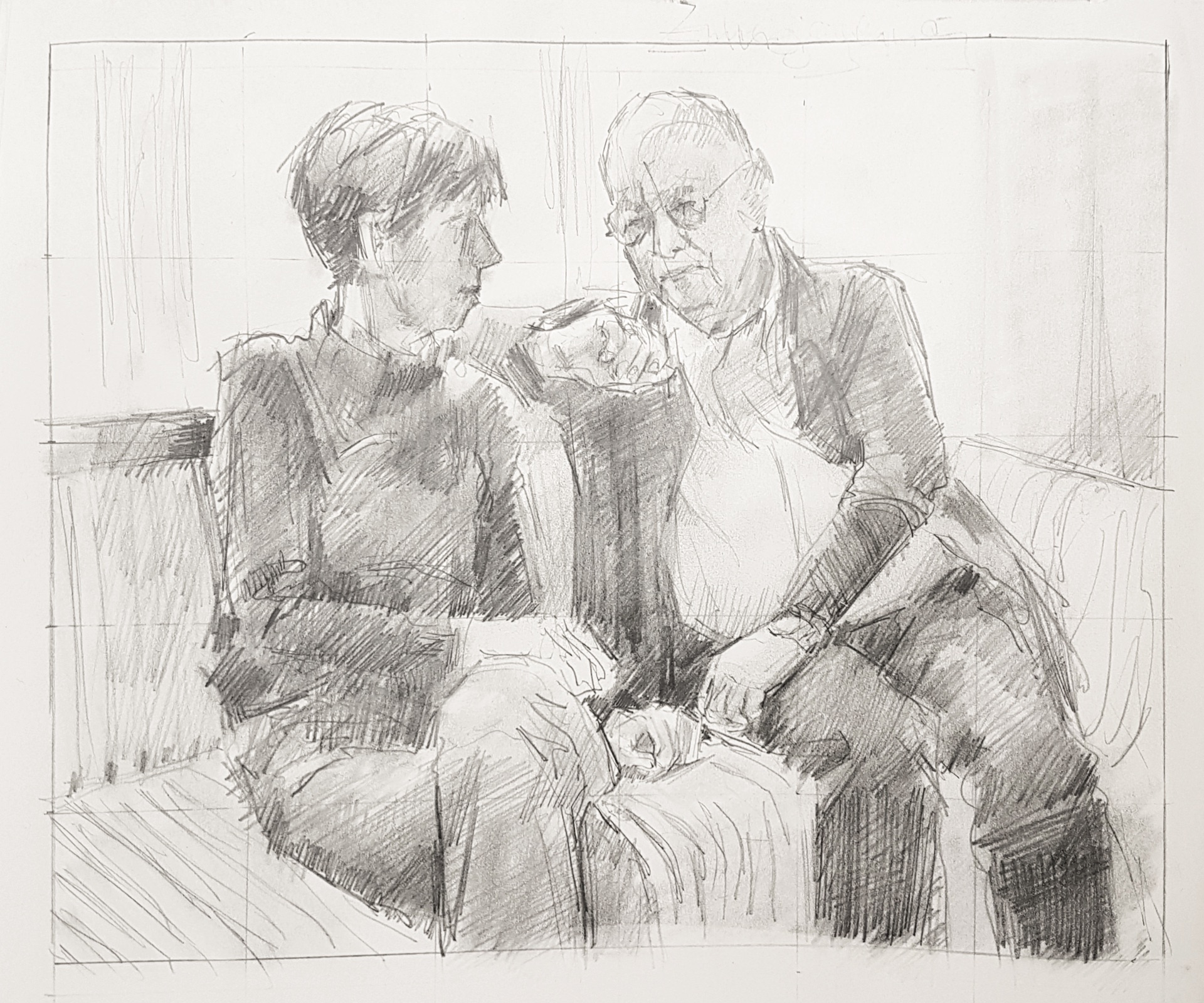 Dieses Material bildet die Basis für die erste künstlerische Vision Ihrer Portraitmalerei. Hier werden entscheidende Grundgedanken umrissen: Haltungen und Gesten festgelegt und Blickrichtungen gezeigt. Gemeinsam stimmen wir die Komposition ab, damit das Portrait von innen her stimmig wird.